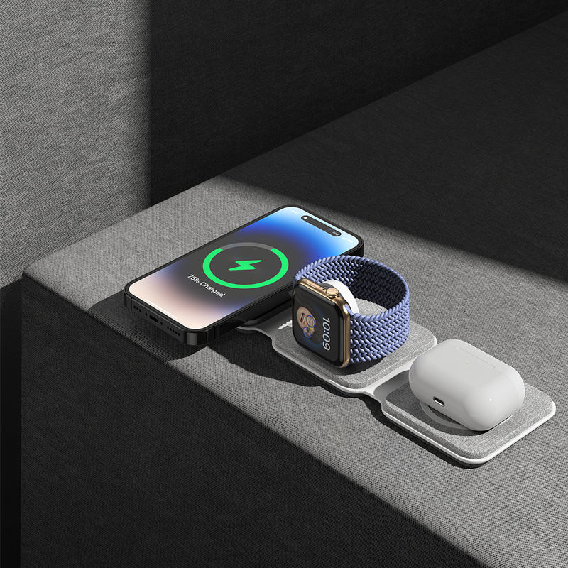 Magnetische draadloze 3-in-1-oplader van stof (opvouwbaar)